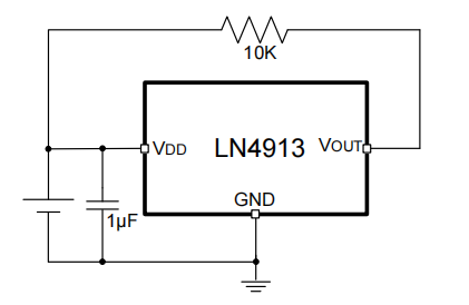LN4913 是一款基于混合信號 CMOS 技術(shù)的無極性霍 爾開關(guān),這款 IC 采用了先進(jìn)的斬波穩(wěn)定技術(shù),因而能夠提 供準(zhǔn)確而穩(wěn)定的磁開關(guān)點(diǎn)。 在電路設(shè)計(jì)上,LN4913 提供了一個內(nèi)嵌的受控時鐘機(jī) 制來為霍爾器件和模擬信號處理電路提供時鐘源,同時這個 受控時鐘機(jī)制可以發(fā)出控制信號使得消耗電流較大的電路周 期性的進(jìn)入“休眠”模式;同樣通過這個機(jī)制,芯片被周期 性的“喚醒”并且根據(jù)預(yù)定好的磁場強(qiáng)度閾值檢測外界穿過 霍爾器件磁場強(qiáng)度的大小。如果磁通密度高于“操作點(diǎn)”閾 值或者低于“釋放點(diǎn)”閾值,則開漏輸出晶體管被驅(qū)動并鎖 存成與之相對應(yīng)的狀態(tài)。而在“休眠”周期中,輸出晶體管 被鎖定在其先前的狀態(tài)下。在電池供電應(yīng)用中,這種設(shè)計(jì)對 于延長工作壽命提供了最好支持。 LN4913 的輸出晶體管在面向封裝標(biāo)示一面存在一定強(qiáng) 南極或北極磁場時被鎖定在開狀態(tài),而在無磁場時鎖定在關(guān) 狀態(tài)。