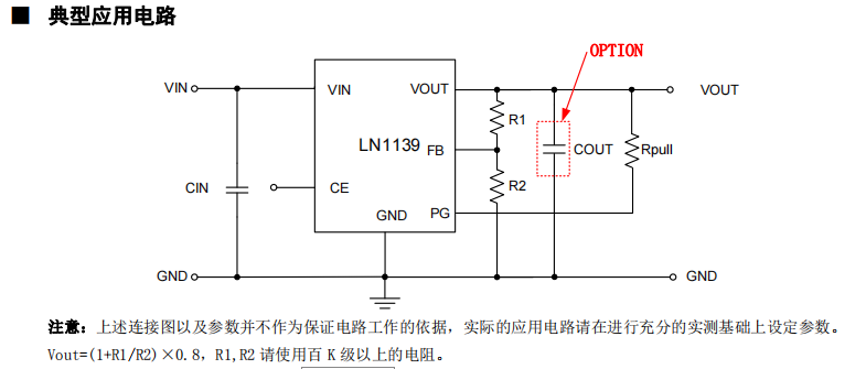 LN1139 可具有 POWER GOOD 指示功能。當(dāng) FB 電壓達(dá)到 0.75V 時(shí),PG 輸出為高。當(dāng) FB 降到 0.7V 以下時(shí),PG 輸出為 低。內(nèi)部運(yùn)放采用了先進(jìn)的結(jié)構(gòu),輸出電容可以省略!